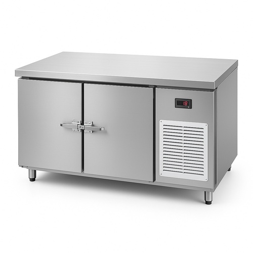 Stainless Steel Under Counter Refrigerator, 350 Liter capacity, double metal door. 5 Star energy efficiency. Temperature range +6°C to -20°C.
