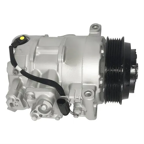 Air-cooled stainless steel AC compressor for Mercedes, BMW, Audi, and Volvo. New condition, standard size, packaged in a box. Ideal for automotive climate control systems.