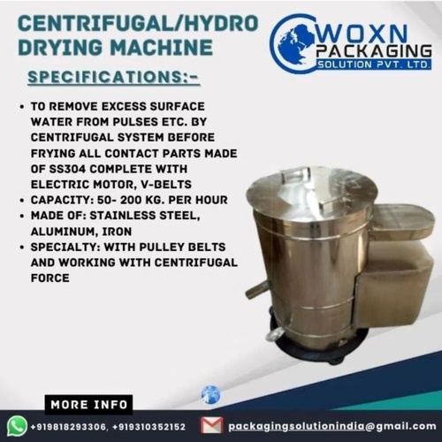 Semi-automatic stainless steel vertical dryer for fruits and vegetables. Capacity over 50kg, with coated surface finish and 50-100 KG/HR production.