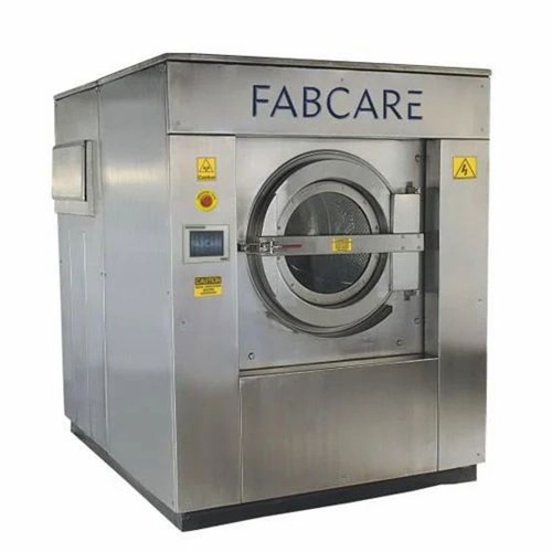 Fabcare stainless steel washer extractor with front loading. Fully automatic operation, gas heating. 15Kg capacity, 220V operation. Suitable for commercial laundry applications.