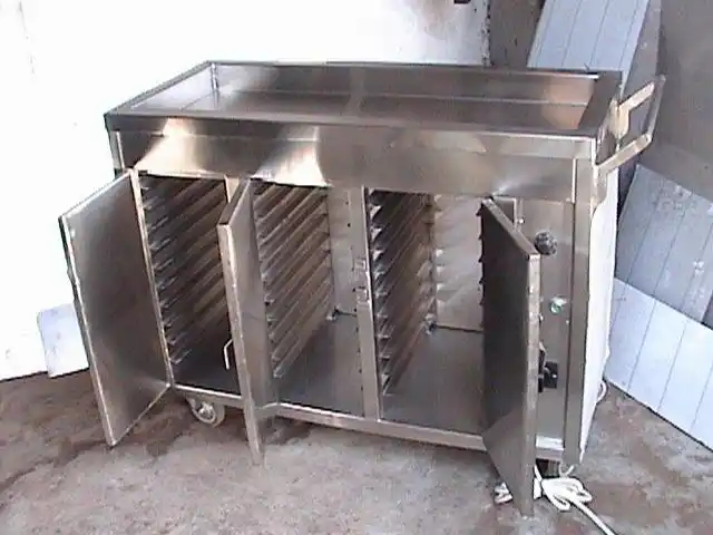 Silver standard stainless steel hot food tray trolley. Durable construction with a model name/number 'Standard'. Made in India for reliable food service.