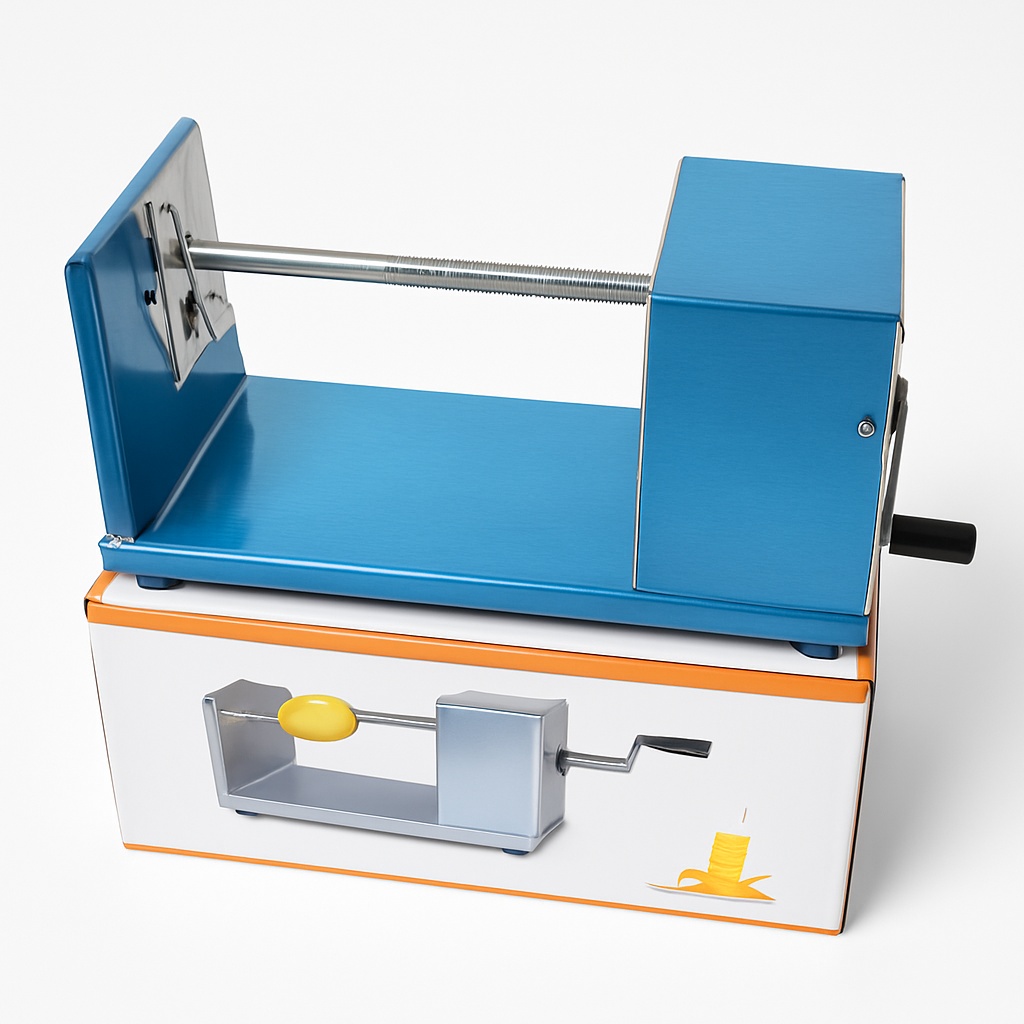 This manual potato twister features durable stainless steel construction. Its spring mechanism creates uniform spirals for versatile culinary applications. Designed for efficient potato cutting.