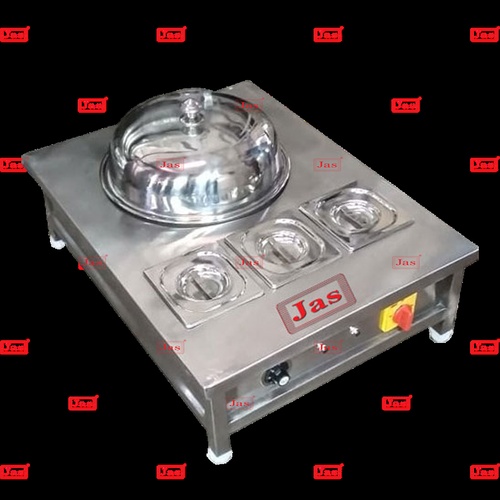 This steamed corn machine is constructed from stainless steel, mild steel, or aluminum. It operates on 230/440 volts and supports single or three-phase power.