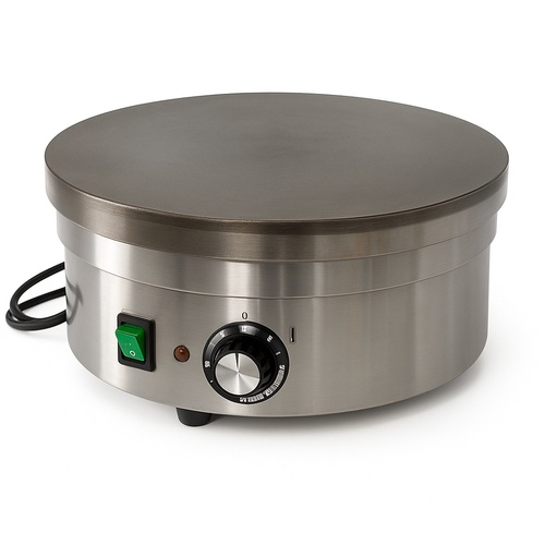 Manual stainless steel 201 crepe maker. Standard design type with durable stainless steel body material. Ensures good temperature control for perfect crepes.