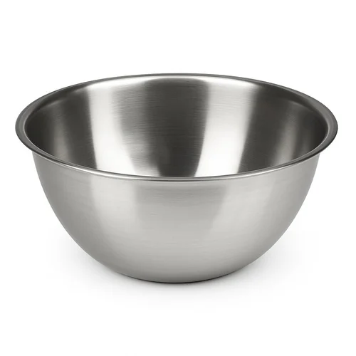 Steel bowls for home and restaurant use. Available in sets of 2, 4, or 5 pieces. Sizes: 14cm, 17cm, 20cm, 23cm. High capacity. No copper base.