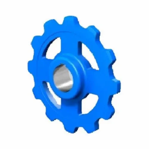 Steel sprocket assembly for bucket elevator chains. Features 13 teeth, blue color, and corrosion resistance. Available new and second-hand.