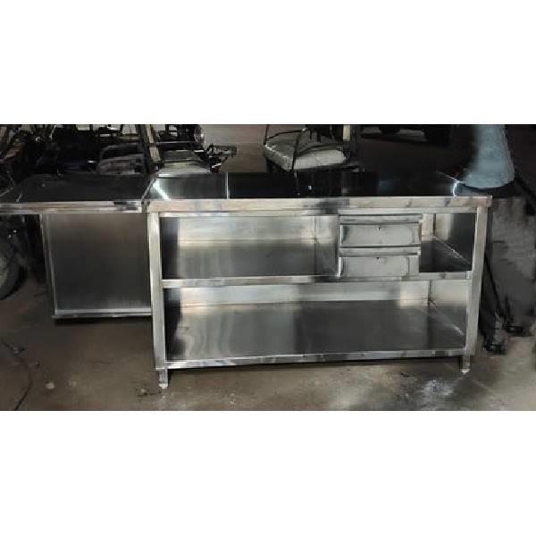 Robust stainless steel cash counter designed for secure transactions. Provides a durable and professional surface for retail or service environments. (Model specified)