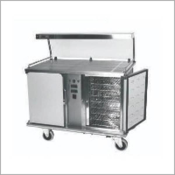 Customizable steel platform trolley for hot food service. Full trailer type structure designed for reliable transport. Supply ability of 200 pieces per month.