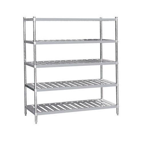 Durable stainless steel kitchen rack providing ample storage. Designed for kitchen organization and utility. (Specifics unavailable).