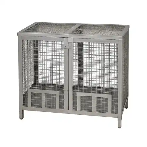 Robust steel bin designed for efficient storage of onions and potatoes. Built for durability and longevity in commercial or home settings. Essential kitchen or pantry equipment.