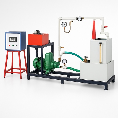 3-phase steel reciprocating pump test rig. Operates on 50-60 Hz frequency and 240V voltage. Suitable for pump testing and performance evaluation.