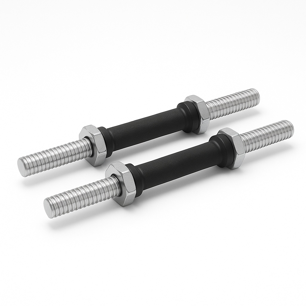 Durable steel dumbbell rods featuring comfortable rubber grips for enhanced workout control. Designed for secure weight plate attachment and long-lasting performance in home and gym settings.