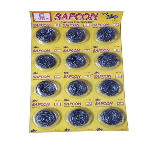 Stainless steel scrubber, 430 grade. Size 10, suitable for kitchen use. Minimum order quantity 100 dozen. Efficient cleaning tool.