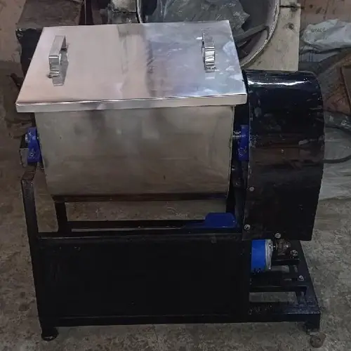 U-type steel/M.S. incense powder mixing machine. Features 0.5HP power, 28RPM rotation speed, 2KW load factor. Semi-automatic and automatic grades available. Customized and standard designs.