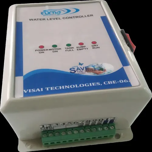 Steel water pump controller, 150 x 110 x 110 mm, 230 V AC, 30 A switch rating. Made in India for water level control applications.