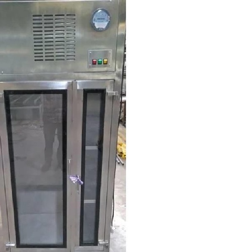 Stainless steel sterile garment storage cabinet with HEPA filter and EU7 intermediate filter. Achieves ISO Class 5 air cleanliness. Operates at 230V, 50Hz with noise below 65 dB.