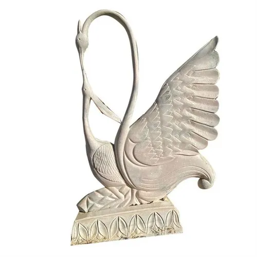 White polished stone art duck sculptures, 4 feet tall. Made in India, packaged in a carton. Ideal for decorative purposes.