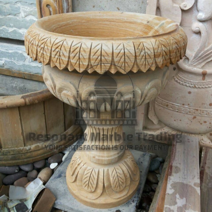 Off-white stone flower pots for home decoration. Round top shape, 2-3 ft height. Minimum order quantity of 10.