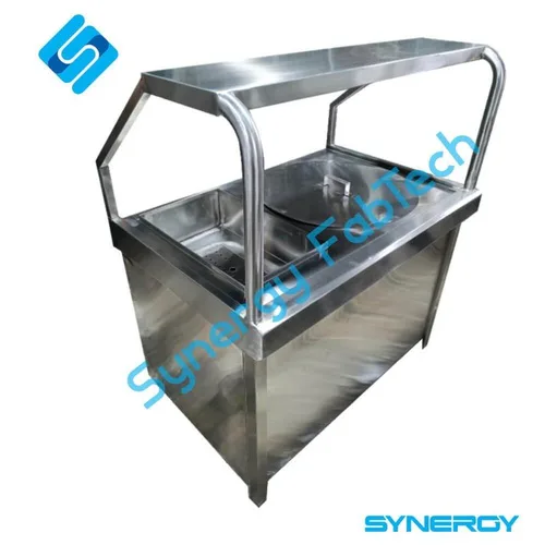 Rectangular stainless steel food counter, 4ft height, for street food stalls. Made in India. Reliable and functional.