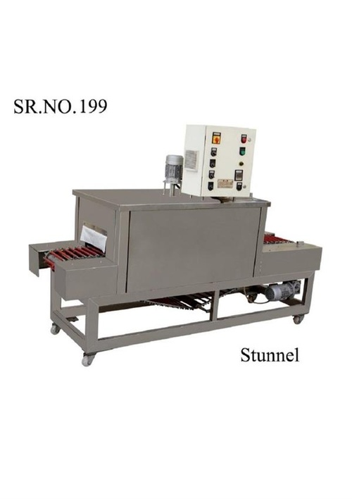 Semi-Automatic MS Shrink Tunnel Machine with 220V operation. Offers reliable packaging performance. Made in India with 1 Year Warranty.