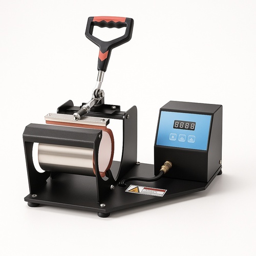 Semi-automatic heat press device for sublimation applications. Available in 110V/220V power options, model MUGPRESS. Currently in stock.