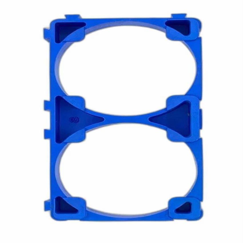 Fire retardant plastic cell holder for 1x2 Li-Ion/LiFePO4 32650 FR batteries. Blue color, 59x32x15mm dimensions, 6g weight. Ideal for battery pack applications.