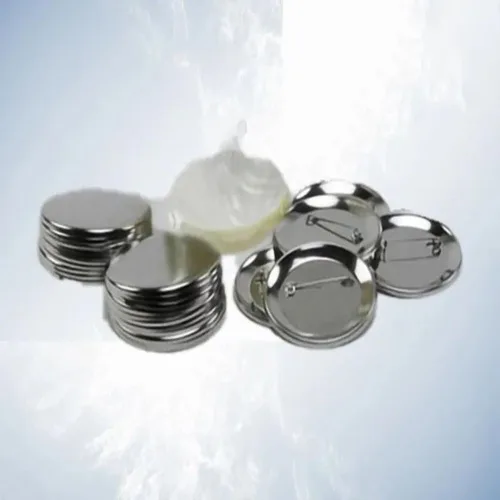 Round SS badges, 48mm size, with a polished surface finish. Silver product color. Packaged in a box with a minimum order quantity of 50 units.
