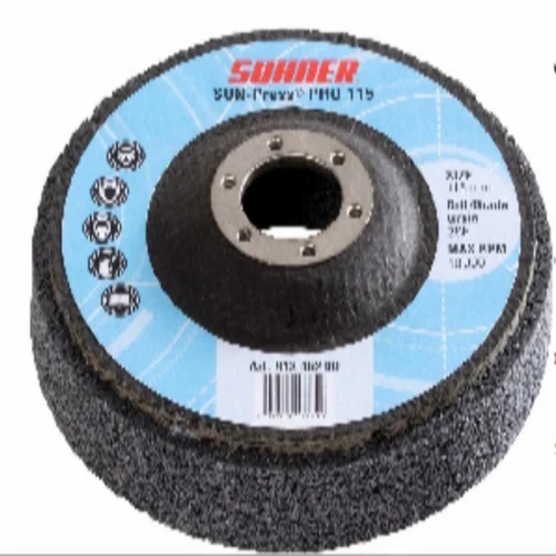 Unitized non-woven abrasive wheel for industrial polishing and finishing applications. Durable construction ensures consistent performance. Suitable for various surface preparation tasks.