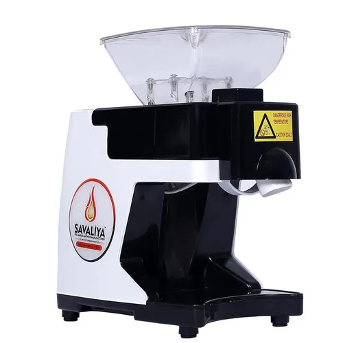 Fully automatic sunflower oil machine with DC motor, 400W power. Produces 2-4 kg/hr, ideal for household use. Stainless steel & ABS construction.