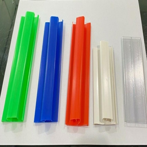 Durable PVC data strip for supermarkets. Features double lock, multicolor options, and flexibility. Available in 40mm height and 890mm length. Made in India with 1-year warranty.