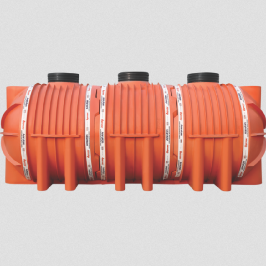 Brown, modular underground water tank with a 30000-liter capacity. Features a length of 10.8m and a diameter of 2.2m, designed for efficient water storage.