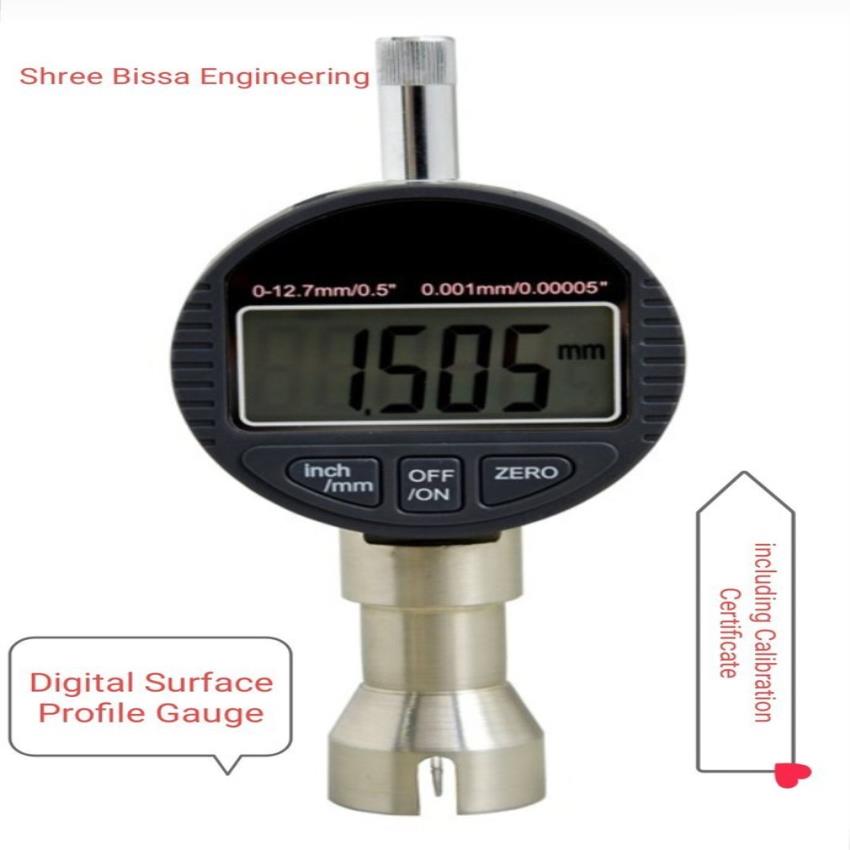 Digital gauge for surface profile measurement. Features +/- 5 Micron accuracy, 500 Micron measuring range, 0.02 mm precision, and 2um resolution. Made in India.