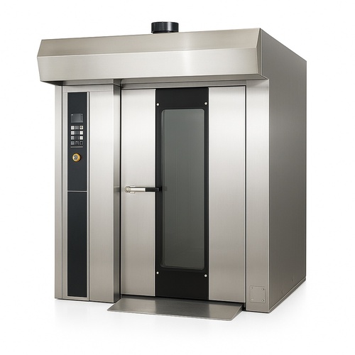 Commercial stainless steel turntable or hook rack oven (SV3 model). Accommodates 20/30 trays (460x760mm), powered by electricity, gas, or oil.