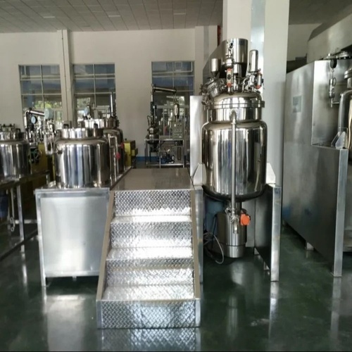 Semi-automatic stainless steel syrup mixing machine with 100 L capacity. Operates on 220V single phase. Polished finish, ideal for industrial applications. Output: 10-20 litres per hour.
