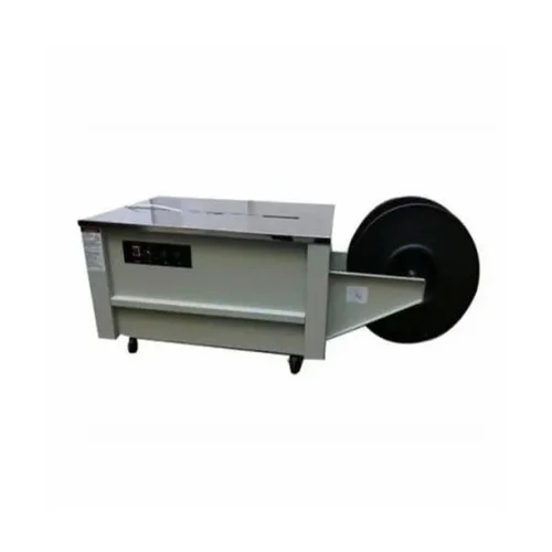Semi-automatic table top strapping equipment with 220V AC, 700W power. Processes up to 35 boxes/hr at 15 m/min strapping speed. Mild steel construction.