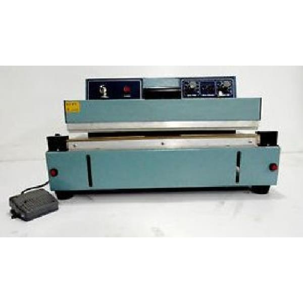 Automatic table-top impulse sealing machine. Features 8mm sealing width and 1KW power consumption. Available in 450mm or 600mm lengths.