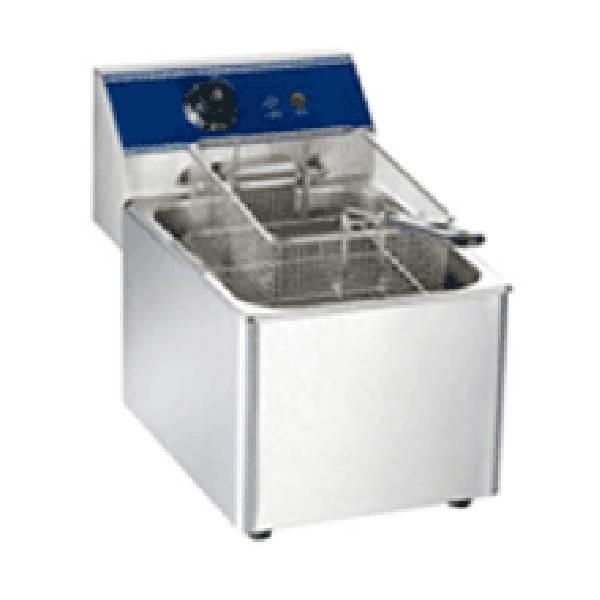 Compact tabletop deep fryer for various food applications. Compact design suitable for smaller commercial kitchens or food stalls.