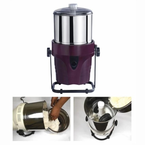 This 2L tabletop tilting wet grinder features a plastic body, atta kneader, and coconut scraper. It operates on 220V single phase power and includes a 5-year motor warranty.