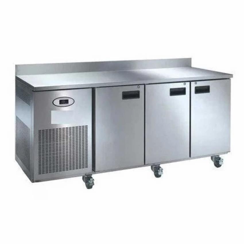 350L tabletop refrigerator with a top freezer. Features 4 shelves, a stainless steel construction, and operates on electricity. Made in India.