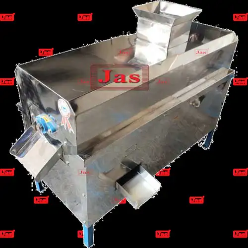 Semi-automatic double-head tamarind seed removal machine with stand. Constructed from stainless steel/mild steel/aluminium. Capacity: 25-2000 kg/hr. Single or three-phase operation.
