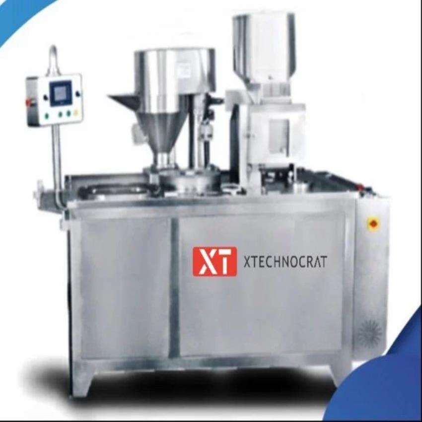 Tamper-proof semi-automatic capsule filling machine for pharmaceutical industry. Fills capsules 00, 1, 2, 3, 4, 5. Offers 50000 capsule/hr production capacity. Made in India.