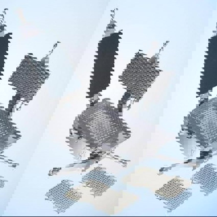 Manual capsule filling machine for pharmaceutical use. Features 10x10=100 holes, tamper-proof capsule type, and mild steel body. Ideal for manual operation in pharma industries.