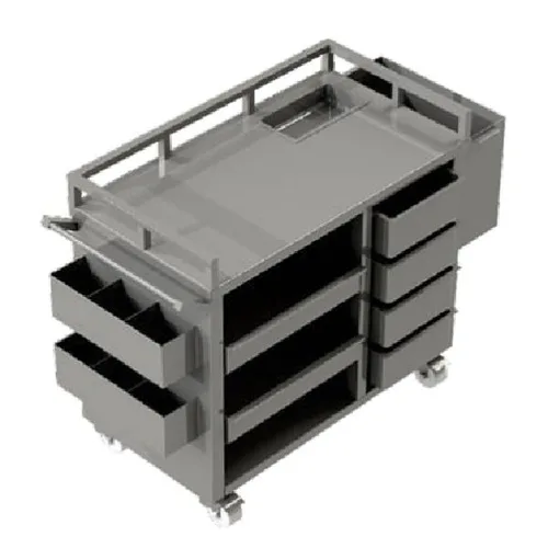 Polished stainless steel tea snack service cart. Customized dimensions for length and thickness. Reliable product for efficient beverage and snack delivery in hospitality settings.
