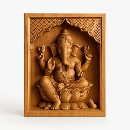 | Model | Teak Wood Carved Lord Ganesha Panel |
