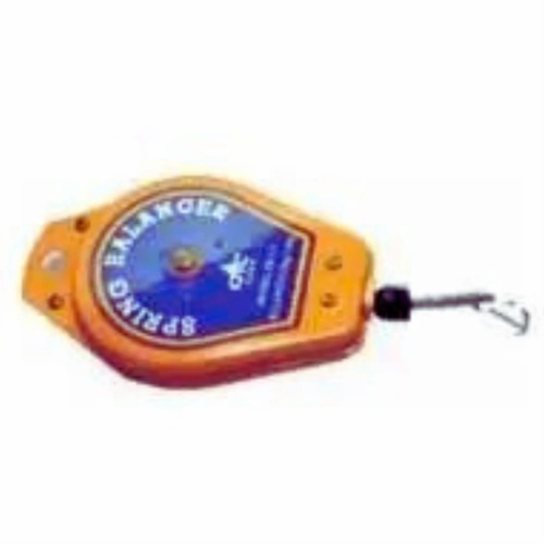 Steel spring balancer, model EW 506, for industrial applications. Weighing capacity up to 1 Kg. Features yellow and blue color scheme, box packed.