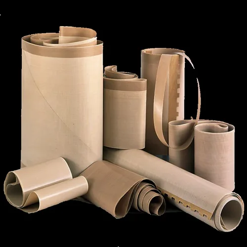 Teflon food machine belt for curved conveyor applications. Features a 1000 mm belt width. Made in India, available for single piece orders.