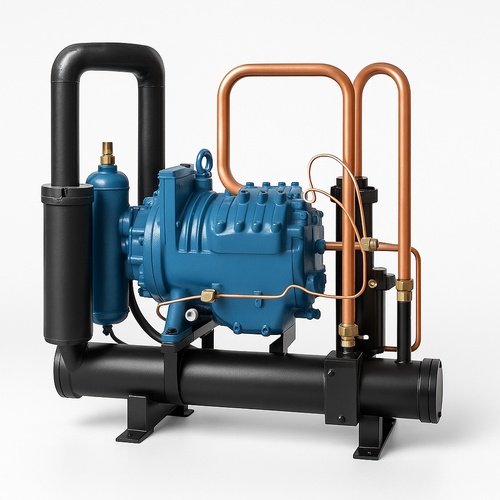 Air and water-cooled screw compressor glycol chiller, 415V single-phase power. Achieves -40°C cooling capacity. New, Made in India, minimum order 1 unit.