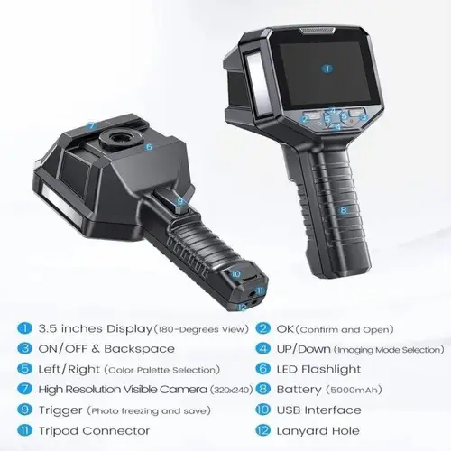 Thermal scanner and camera featuring an LCD display for clear visualization. Manufactured in India, this device provides essential thermal imaging capabilities.