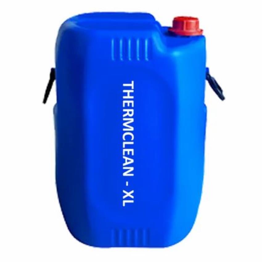 Thermclean XL chemical for industrial thermic fluid line flushing. 50 Kg pack, liquid form, suitable for industrial use.