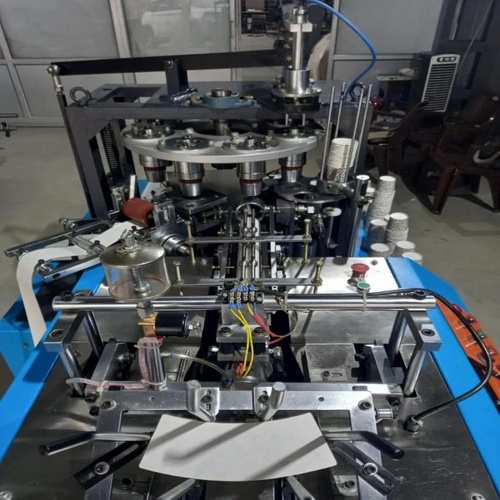 Automatic thermocol cup making machine operating on single phase. Produces 50 cups/min with a 100 ml cup size. Weighs 1500 Kg and includes a 1-year warranty.